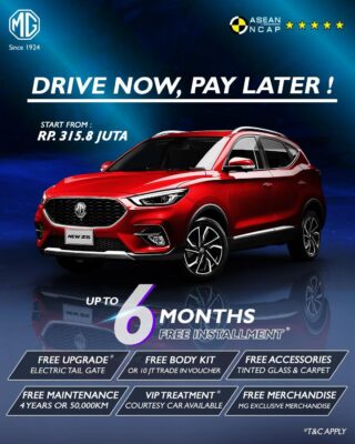 MG pun melangkah lebih jauh dengan menyelenggarakan pameran bertajuk “Dare to Drive” di seluruh Indonesia, mulai dari area Jabodetabek seperti Mal Pondok Indah, Gandaria City, Lippo Mall Puri, Mal Kelapa Gading 3, Summarecon Mal Bekasi, Central Park, dan bahkan di luar kota Jakarta seperti Trans Studio Bandung, Paris Van Java, Trans Studio Makassar, Phinisi Point Makassar, Mal Ratu Indah Makassar Manado Town Square, Pakuwon Trade Center, Pakuwon City Mal Surabaya, Palembang Icon, Cambridge Square Medan, Center Point Medan, Mal SKA dan Mal Living World Pekanbaru yang bertujuan untuk memberikan pengalaman berkendara yang mengasyikkan bagi para pecinta otomotif di seluruh Indonesia. Langkah ini sekaligus meredefinisikan harapan konsumen MG di Indonesia. Nikmati promo “Drive Now – Pay Later” yang memberikan kemudahan fantastis bagi para konsumen untuk memiliki New MG ZS dengan free installment hingga 6 bulan.